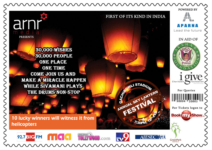 Thousands of Sky Lanterns will brighten the night skies with Shivamani playing the drums non stop here in Hyderabad. From folk dancers to traditional artists, you will find them all right here at Gachibowli Stadium. Performances by shaan will leave you "BREATHLESS".