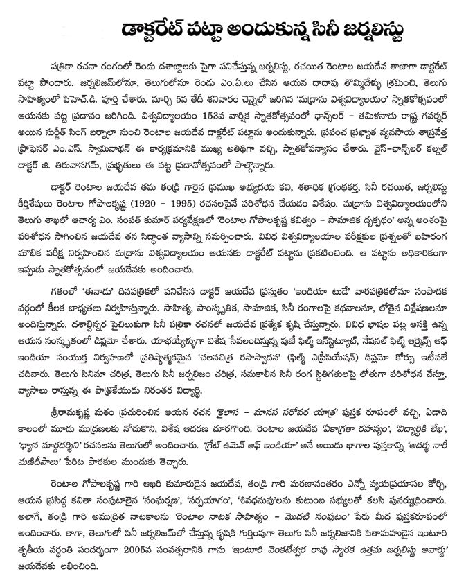 Doctorate to Rentala Jayadeva