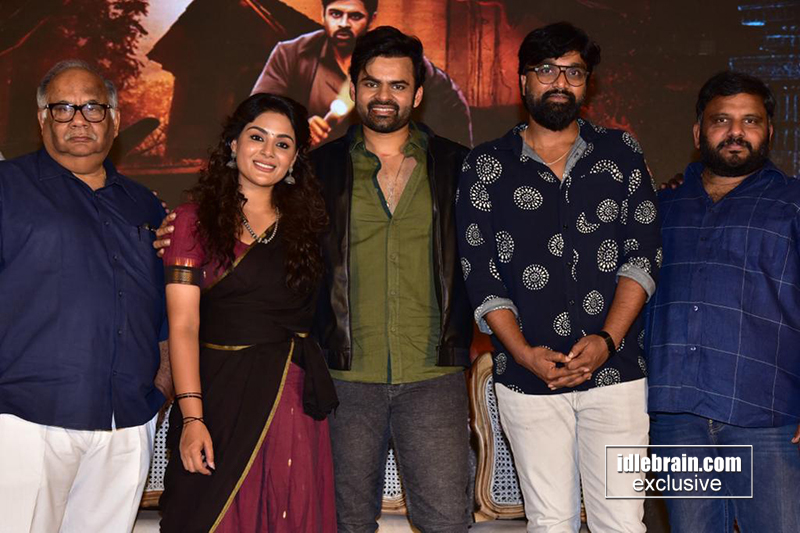కార్తిక్ దండు మాట్లాడుతూ.. 'ఈ సినిమా కథను 2018లో రాశాను. రంగస్థలం షూటింగ్లో ఉన్న సుకుమార్ గారికి ఈ కథను చెప్పాను. కరోనా వల్ల సినిమా ఆలస్యం అవుతూ వచ్చింది. కానీ కరోనా గ్యాప్లో కథను ఎక్కడా మార్చలేదు. యాక్సిడెంట్ తరువాత తేజ్ గారిలో తెలియని ఓ భయం ఉండేది. సెట్లో ఫస్ట్ డే రోజు తేజ్ గారు మాటలు సరిగ్గా రావడం లేదని, దాని ద్వారా వేరే వాళ్లకు ఏమైనా ఇబ్బంది అవుతుందా? అనే భయంలో ఉండేవారు. కానీ నాలుగో రోజు వచ్చి అదరగొట్టేశారు. టెక్నీషియన్స్ అందరికీ రుణపడి ఉంటాను. టీం అంతా కూడా ఎంజాయ్ చేస్తూ సినిమాను చేశాం. ఈ సినిమాను ఎంజాయ్ చేస్తూ చేశామ' అని అన్నారు.
