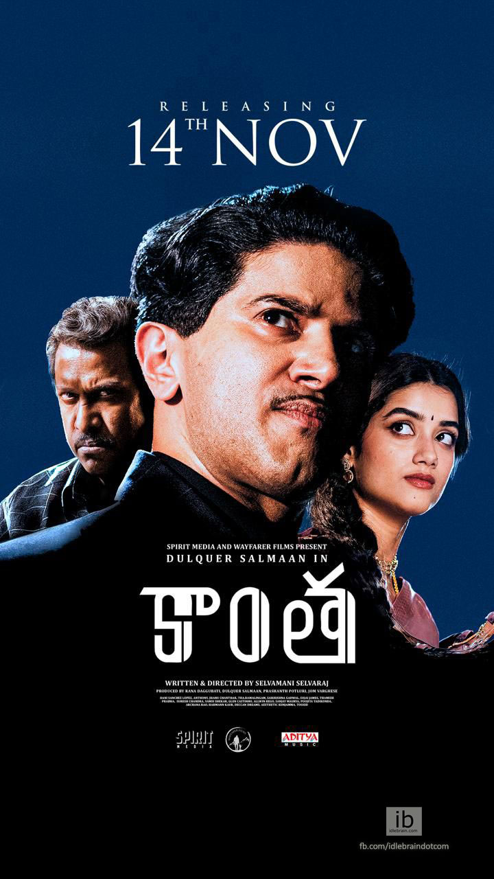 Extending Diwali wishes, the makers came up with an update regarding the film’s release date. Kaantha will hit the big screens in less than a month on November 14th. The release date poster has a dramatic, and slightly vintage feel, with serious expressions from the main leads- Dulquer Salmaan, Samuthirakani, and Bhagyashri Borse.