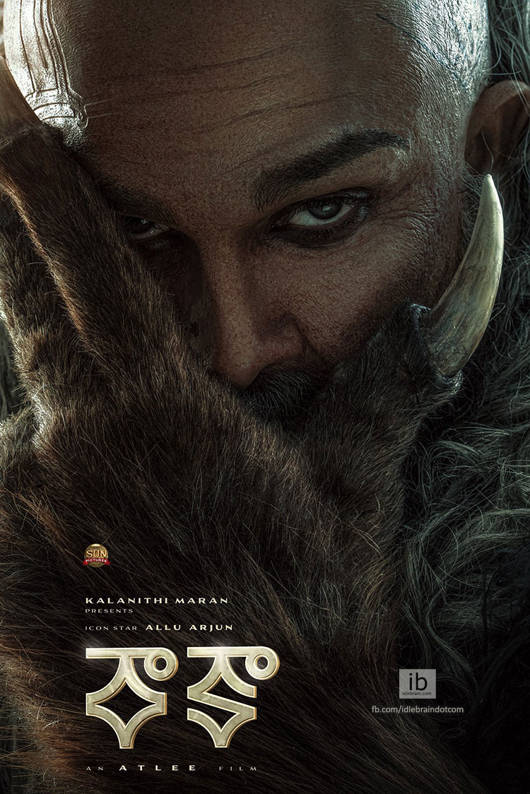 In the first look poster, Icon Star Allu Arjun is seen in a striking and unique avatar. The poster introduces him as bald, kohl-eyed, staring directly into the camera, while sporting the animal claws teased yesterday. His forehead also features markings reminiscent of Viking tattoos.