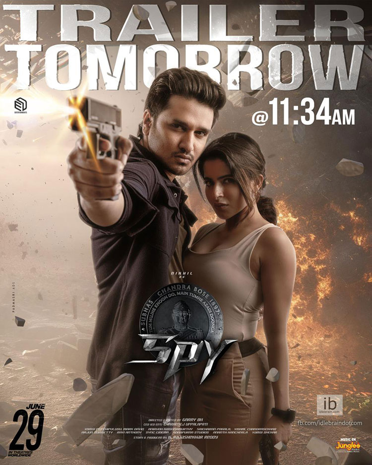 The theatrical trailer of SPY will be launched tomorrow at 11:34 AM and AAA Cinemas is the venue picked for the same. This will be the first event in AAA Cinemas which was launched last week. The announcement poster sees both Nikhil and Iswarya Menon holding guns.