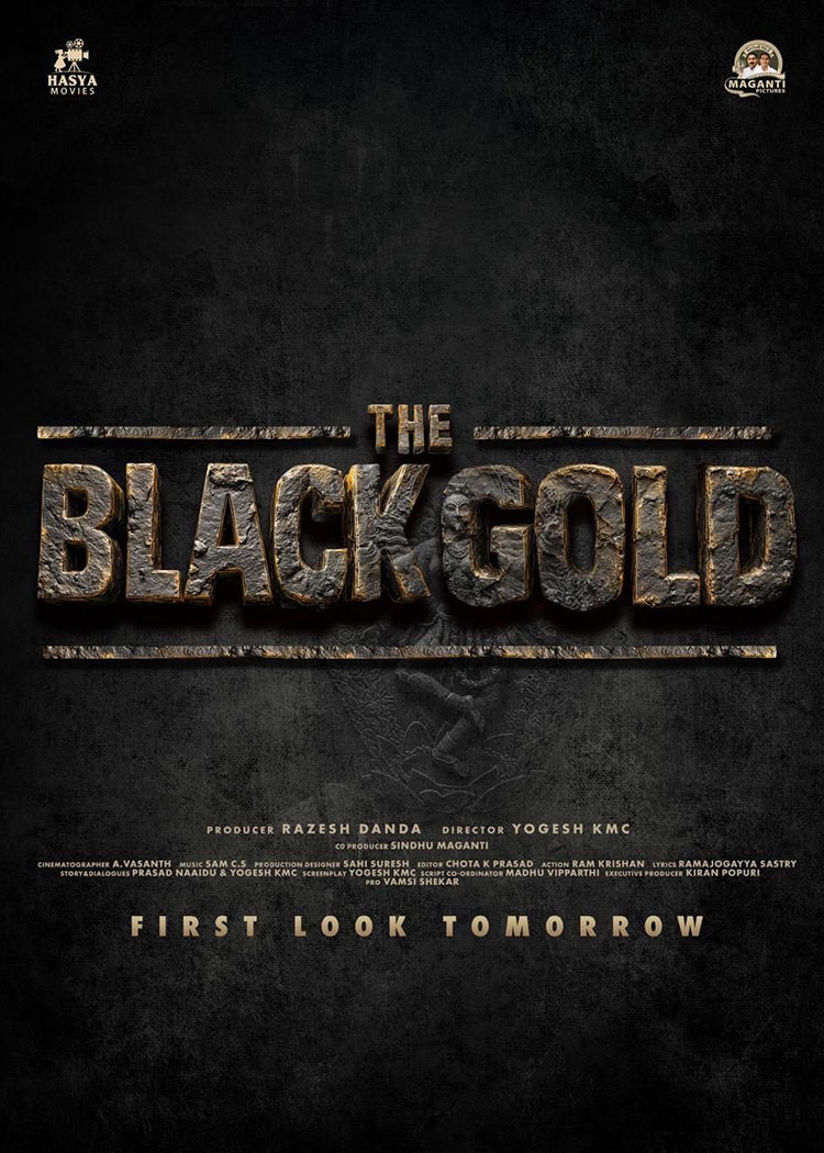 సంయుక్త, యోగేష్ కెఎంసి, రాజేష్ దండా, హాస్య మూవీస్, మాగంటి పిక్చర్స్, సంయుక్త ప్రెజెంట్స్ సినిమా టైటిల్ 'ది బ్లాక్ గోల్డ్'- రేపు ఫస్ట్ లుక్ రిలీజ్