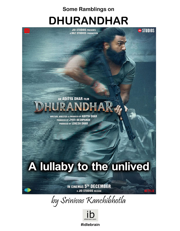...every single incident portrayed in the movie is ripped right out of the headlines at various points in time. Infiltration of the Karachi street gangs by the Indian intelligence's covert operatives, drive by shootings of key recruiting members of Lakshar-e-Toiba (there was detailed reportage of how close the coverts came close to offing Dawood Ibrahim at his secretly guarded place in Karachi), Pakistani internal strife with its warring sectarian tribes - the Pasthuns, the Punjabis, the Balochs, the Mohajirs - reminding of the Middle Age's Middle Eastern tribes, the unholy nexus of local politicians and the underworld, and among all this, the hapless civilian society caught between patriotism and propaganda. "Dhurandhar" does not play like a mere movie, it reads like a playbook, like what Indian intelligence would do to counter ISI's strategy, like how coverts are identified, groomed and slipped into the cracks of the society and how the covert, lying in the dark, waiting in the shadows, patiently, for years together, suddenly make their play at the opportune moment, and either slip back into dark, escape or sometimes even get caught (like the Indian operative, Kulbhushan jadhav, whose trial and (death) sentencing sparked a major diplomatic row), whose identities are never acknowledged, whose achievements are never celebrated and whose lives are unlived. At more than three and half hours running time, the movie earns every single minute of it and its movement in and out of facts into plausible territory is as seamless and effective (like halting the proceedings on the screen with real life transcript of the conversations between the terrorists holed up in Taj, Mumbai and their handlers in Karachi)....