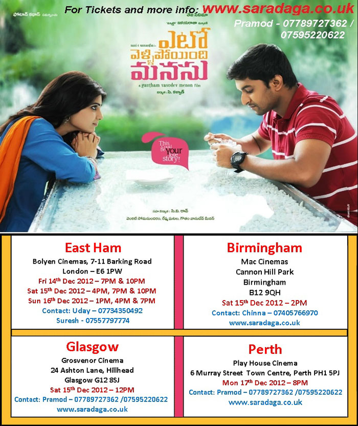 Yeto Vellipoyindi Mansu is set to sway the hearts of audiences worldwide, from 14th December, 2012.