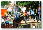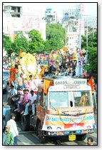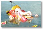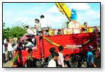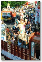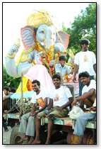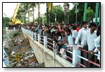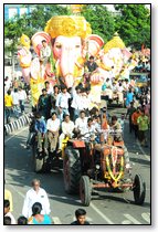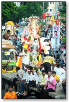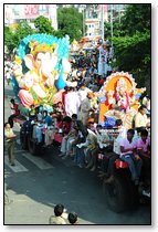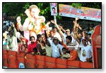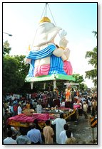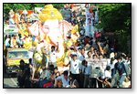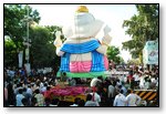 The much awaited moment of "Ganesh Nimajjan" commenced today in Hyderabad. Thousands of Ganesh idols from all nooks and corners of twin cities have started making their journey to Hussain Sagar lake right from Saturday midnight. More than 25,000 police personnel are being deployed for the bandhobasth.