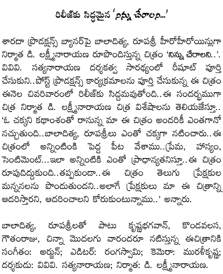 Ninnu Cheralani is ready for release