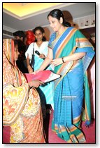 Actress Jaya Sudha (Sahaja Nati) entered into 51 today. She celebrated her birthday among blind, poor and old people today. She arranged a press meet at Film Nagar cultural club. She cut a cake and distributed sarees.