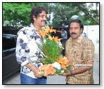 Next the scene shifted to ANR's residence. Statewide Nagarjuna Fans President Ravindra Reddy conducted the function. On behalf of the fans, a cheque for Rs. 1 Lakh was donated to Dr. Akkineni International Foundation for taking up welfare activities. Nagarjuna presented a swarna kankanam to senior journalist Nandagopal and gracefully honored him with shawl. A financial assistance of Rs. 20,000 was extended to some physically handicapped students.