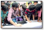 Ram celebrated his birthday today (15 May) at Express Towers in Kondapur where the current schedule of his latest film is going on. He is currently acting in a fun film featuring lots of kids. A few fun action episodes featuring Ram and 25 kids are being shot in the choreography of Peter Hynes. This movie features Kajal Agarwal in the female lead. Sharwanand directs this film. 60% of talkie is completed so far. And the movie is likely to release in the month of August. Sravanthi Ravi Kishore is producing this movie after delivering a blockbuster Ready with Ram.