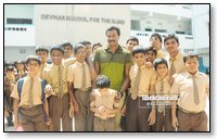 Actor Sunil celebrated his birthday today at Devnar School for the blind at Begumpet, Hyderabad with visually impaired students. He has also donated a cheque for Rs 2 lakhs to Devnar Foudation. Sunil's latest film Mr. Pelli Koduku is releasing on 1st March 2013