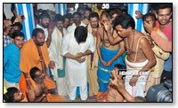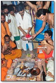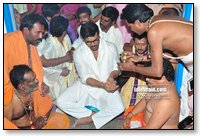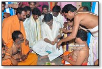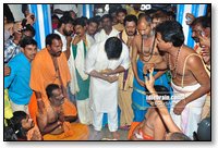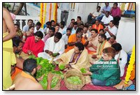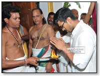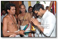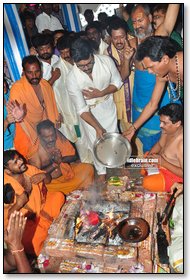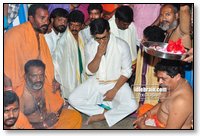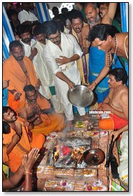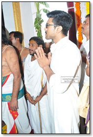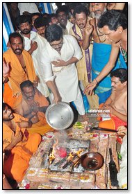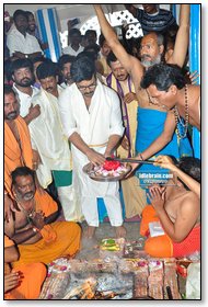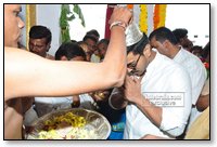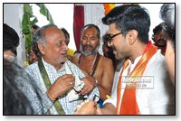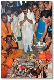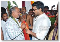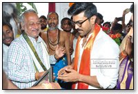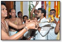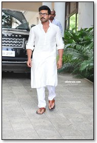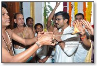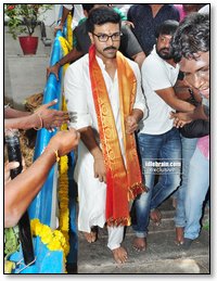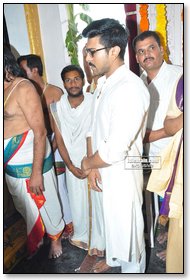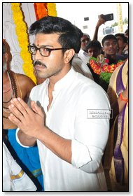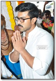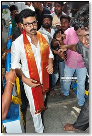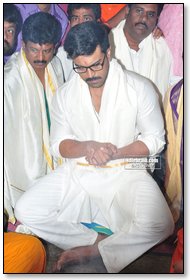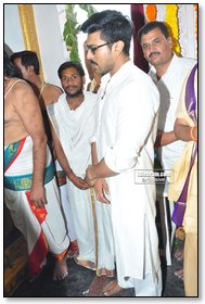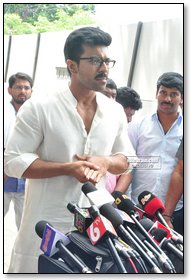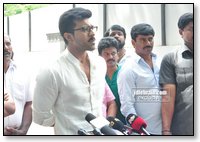 ఆగస్టు 22(నేడు)న మెగాస్టార్ చిరంజీవి పుట్టినరోజును పురస్కరించుకుని మెగా ఫ్యాన్స్ 9 రోజుల పాటు అంగరంగ వైభవంగా ఏపీ, తెలంగాణలోని పలు దేవాలయాల్లో పూజా కార్యక్రమాలు నిర్వహించిన సంగతి తెలిసిందే. ఈసారి మెగాస్టార్ తన కెరీర్లోనే అత్యంత ప్రతిష్ఠాత్మకమైన 150వ సినిమాలో నటిస్తున్నారు కాబట్టి ఈ బర్త్డే సెలబ్రేషన్స్ని మెగా ఫ్యాన్స్ ఎంతో ప్రతిష్ఠాత్మకంగా తీసుకుని నిర్వహించారు. ప్రఖ్యాత దేవాలయాల్లో హోమాలు, పూజా కార్యక్రమాలు నిర్వహించి తమ అభిమానాన్ని చాటుకున్నారు. నేడు ఫిలింనగర్ (హైదరాబాద్) దైవసన్నిధానంలో పూజా మహోత్సవాల ముగింపు కార్యక్రమం జరిగింది. ఈ ముగింపు పూజల్లో 150వ సినిమా నిర్మాత, మెగా పవర్స్టార్ రామ్చరణ్ పాల్గొన్నారు. ఈ సందర్భంగా చరణ్ అభిమానులను ఉద్ధేశించి మాట్లాడారు. ఘనంగా మెగాస్టార్ పుట్టినరోజు సంబరాలు చేసినందుకు అభిమానులకు ప్రత్యేకంగా కృతజ్ఞతలు తెలియజేశారు. ఇంత పెద్ద స్థాయిలో ఫ్యాన్స్ పూజా కార్యక్రమాలు చేయడం తనకి చాలా ఆనందాన్నిచ్చిందని చరణ్ అన్నారు. హైదరాబాద్ జూబ్లీహిల్స్లోని మెగాస్టార్ స్వగృహం వద్ద ఏర్పాటు చేసిన పాత్రికేయుల సమావేశంలో ఫ్యాన్స్కి కృతజ్ఞతాభివందనాలు తెలియజేశారు చరణ్.