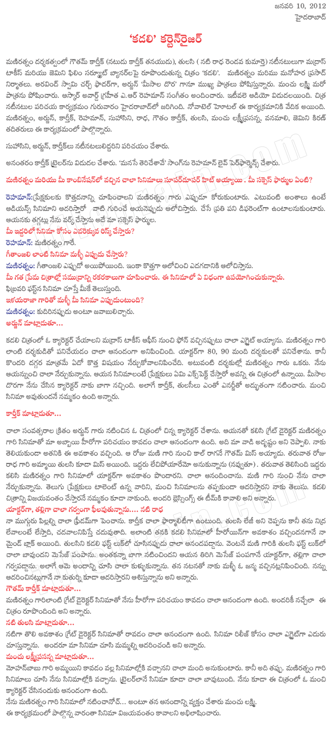 Mani Ratnam's Kadali curtain raiser and trailer launch