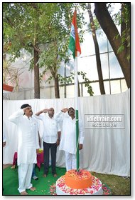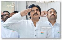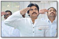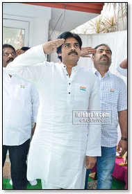 JanaSena Party chief Pawan Kalyan flag hoisting at Party office