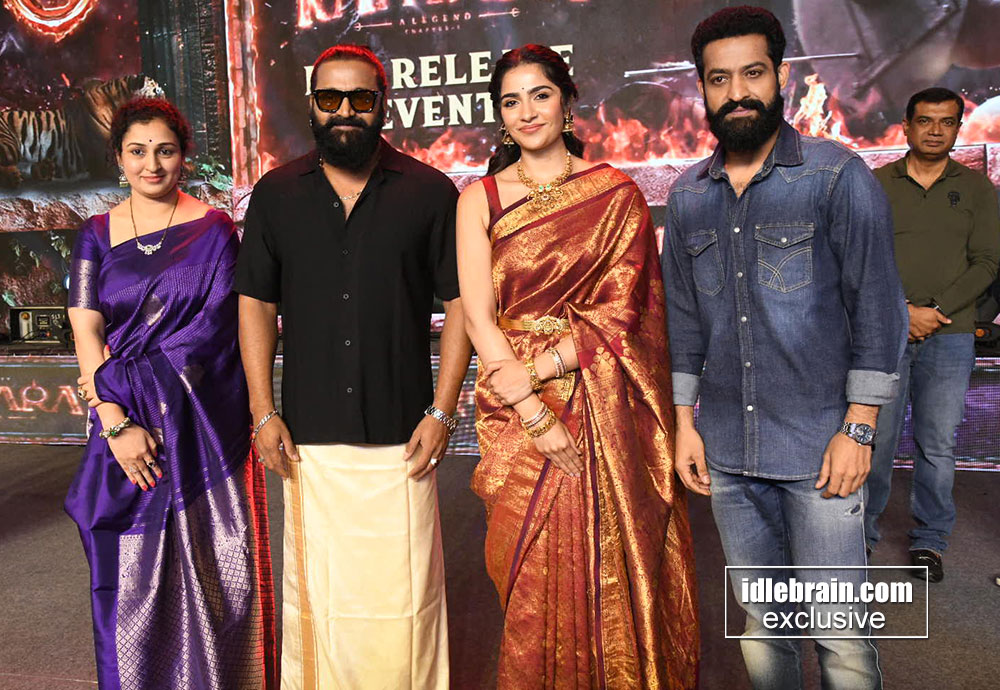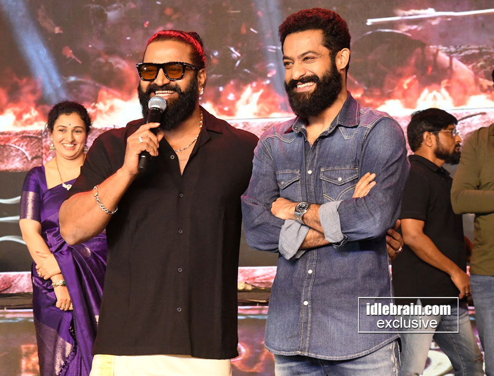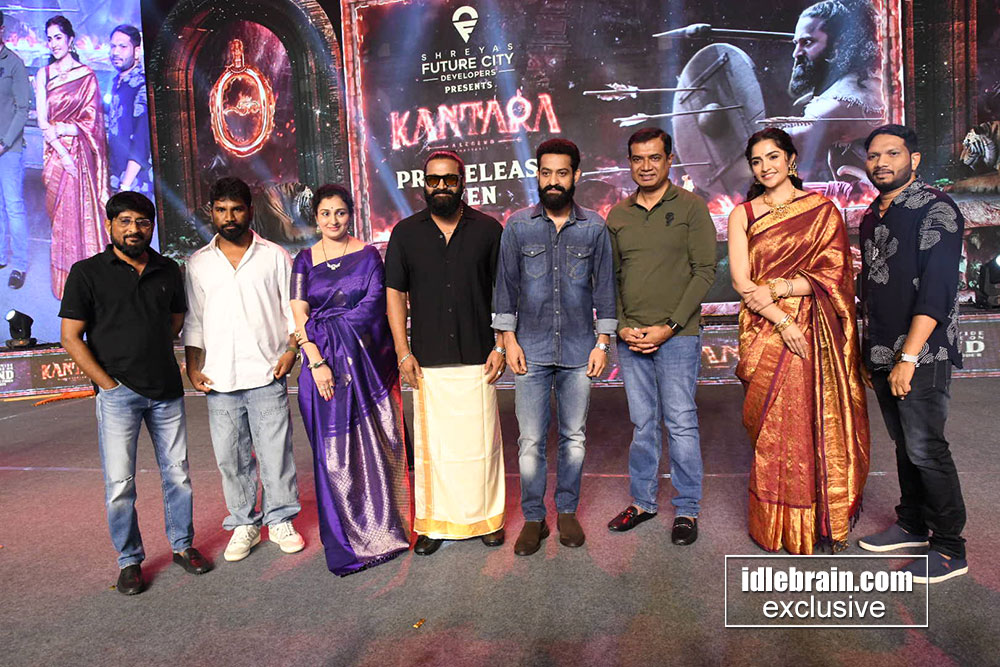 కాంతారతో పాన్ ఇండియా బ్లాక్బస్టర్ అందుకున్న రిషబ్ శెట్టి మోస్ట్ ఎవైటెడ్ ప్రీక్వెల్ కాంతార: చాప్టర్ 1తో రాబోతున్నారు. ఈ చిత్రాన్ని ఆయన స్వయంగా దర్శకత్వం వహించి, నటించారు. ఇటీవల విడుదలైన థియేట్రికల్ ట్రైలర్ అన్ని భాషలలో హ్యుజ్ బజ్ క్రియేట్ అంచనాలను భారీగా పెంచింది. ప్రఖ్యాత పాన్-ఇండియా నిర్మాణ సంస్థ హోంబలే ఫిల్మ్స్ నిర్మించిన ఈ చిత్రం అక్టోబర్ 2న దసరాకు విడుదల కానుంది. ఈ సందర్భంగా మేకర్స్ ప్రీరిలీజ్ ఈవెంట్ నిర్వహించారు. యంగ్ టైగర్ ఎన్టీఆర్ ముఖ్య అతిథిగా హాజరైన ఈ వేడుక చాలా గ్రాండ్ గా జరిగింది.