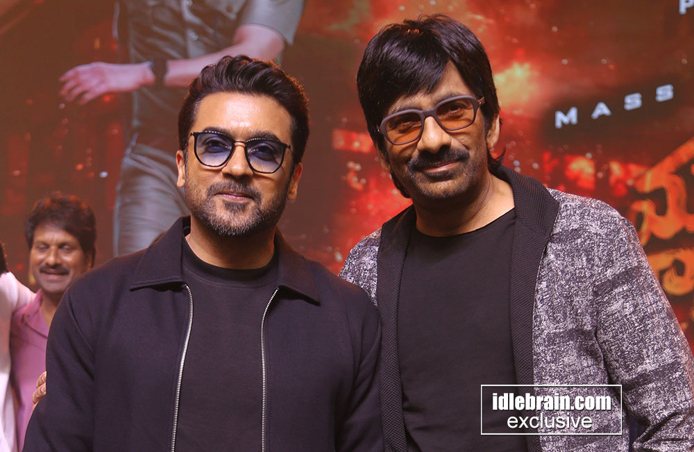మాస్ మహారాజా రవితేజ అభిమానులతో పాటు తెలుగు సినీ ప్రియులంతా ఎంతగానో ఎదురుచూస్తున్న చిత్రం 'మాస్ జాతర'. శ్రీకర స్టూడియోస్ సమర్పణలో సితార ఎంటర్టైన్మెంట్స్, ఫార్చూన్ ఫోర్ సినిమాస్ పతాకాలపై సూర్యదేవర నాగవంశీ, సాయి సౌజన్య ప్రతిష్టాత్మకంగా నిర్మించారు. తెలుగులో ఎన్నో విజయవంతమైన చిత్రాలకు రచయితగా పనిచేసిన భాను భోగవరపు ఈ చిత్రంతో దర్శకుడిగా పరిచయమవుతున్నారు. రవితేజ, శ్రీలీల, నవీన్ చంద్ర ప్రధాన పాత్రలు పోషించిన ఈ చిత్రానికి భీమ్స్ సిసిరోలియో సంగీతం అందించారు. ఇప్పటికే విడుదలైన టీజర్, ట్రైలర్, పాటలకు అన్ని వర్గాల ప్రేక్షకుల నుంచి అద్భుతమైన స్పందన లభించింది. అక్టోబర్ 31వ తేదీ సాయంత్రం ప్రత్యేక ప్రదర్శనలతో థియేటర్లలో అడుగుపెట్టనున్న 'మాస్ జాతర' చిత్రంపై భారీ అంచనాలు నెలకొన్నాయి. ఆ అంచనాలను, అభిమానుల ఉత్సాహాన్ని రెట్టింపు చేసేలా మంగళవారం సాయంత్రం హైదరాబాద్ లోని జె.ఆర్.సి కన్వెన్షన్ లో ప్రీ రిలీజ్ వేడుకను చిత్ర బృందం ఘనంగా నిర్వహించింది. అభిమానుల కోలాహలం నడుమ వైభవంగా జరిగిన ఈ వేడుకకు తమిళ అగ్ర కథానాయకుడు సూర్య ముఖ్య అతిథిగా హాజరయ్యారు.