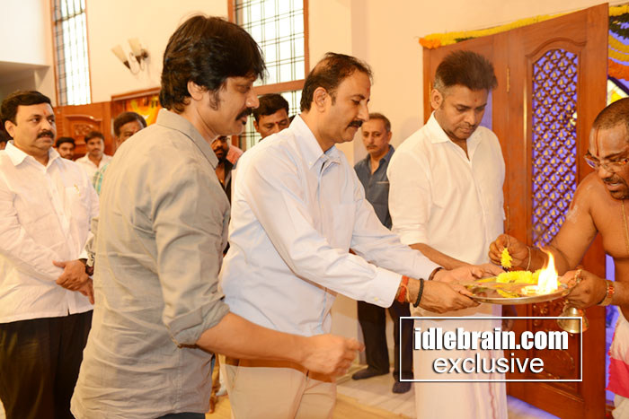 Pawan Kalyan this morning attended the pooja for the opening of his forthcoming film produced by Sharrath Marar under the Northstar Entertainment Banner.