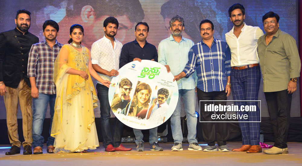 వరుస సక్సెస్లతో డబుల్ హ్యాట్రిక్ సాధించిన నేచురల్ స్టార్ నాని తాజాగా 'నిన్ను కోరి' చిత్రంతో ట్రిపుల్ హ్యాట్రిక్కి శ్రీకారం చుట్టబోతున్నారు. నాని, నివేద థామస్ సూపర్హిట్ కాంబినేషన్లో డి.వి.వి. ఎంటర్టైన్మెంట్స్ ఎల్.ఎల్.పి., కోన ఫిల్మ్ కార్పోరేషన్ సంయుక్తంగా శ్రీమతి డి. పార్వతి సమర్పణలో శివ నిర్వాణని దర్శకుడిగా పరిచయం చేస్తూ ప్రముఖ నిర్మాత దానయ్య డి.వి.వి. నిర్మిస్తున్న యూత్ఫుల్ లవ్ ఎంటర్టైనర్ చిత్రం 'నిన్నుకోరి'. గోపీ సుందర్ సంగీత దర్శకత్వంలో రూపొందిన ఈ చిత్రంలోని పాటలకి అదిరిపోయే రెస్పాన్స్ వస్తోంది. ముఖ్యంగా 'బ్రేకప్,, అడిగా.. అడిగా, 'ఒన్స్ అప్ ఆన్ ఎ టైమ్' పాటలు సూపర్హిట్ అయి సంగీత ప్రియుల్ని విశేషంగా అలరిస్తున్నాయి. ఈ చిత్రం థియేట్రికల్ ట్రైలర్కి ఎక్స్ట్రార్డినరీ రెస్పాన్స్ వస్తోంది. దాంతో రిలీజ్కి ముందే ఈ చిత్రంపై ఇండస్ట్రీలోనూ, ఆడియన్స్లో పాజిటివ్ బజ్ ఏర్పడింది. ప్రపంచ వ్యాప్తంగా ఈ చిత్రం జూలై 7న గ్రాండ్గా రిలీజ్ అవుతుంది. కాగా ఈ చిత్రం ప్రీ రిలీజ్ ఫంక్షన్ జూన్ 29న హైదరాబాద్ జె.ఆర్.సి. కన్వెన్షన్ సెంటర్లో చిత్ర ప్రముఖులు, అభిమానుల మధ్య అట్టహాసంగా జరిగింది. ఈ కార్యక్రమానికి ఆలిండియా డైరెక్టర్ ఎస్.ఎస్.రాజమౌళి, సూపర్ డైరెక్టర్ కొరటాల శివ, ప్రముఖ దర్శకులు కళ్యాణ్ కృష్ణ, హను రాఘవపూడి, బి.వి.ఎస్.రవి, అవసరాల శ్రీనివాస్, ప్రముఖ నిర్మాతలు డి.సురేష్బాబు, కె.ఎల్.దామోదరప్రసాద్, ఎన్.వి.ప్రసాద్, జెమిని కిరణ్, సాయి కొర్రపాటి, కృష్ణలతో పాటు చిత్ర యూనిట్ సభ్యులు పాల్గొన్నారు.