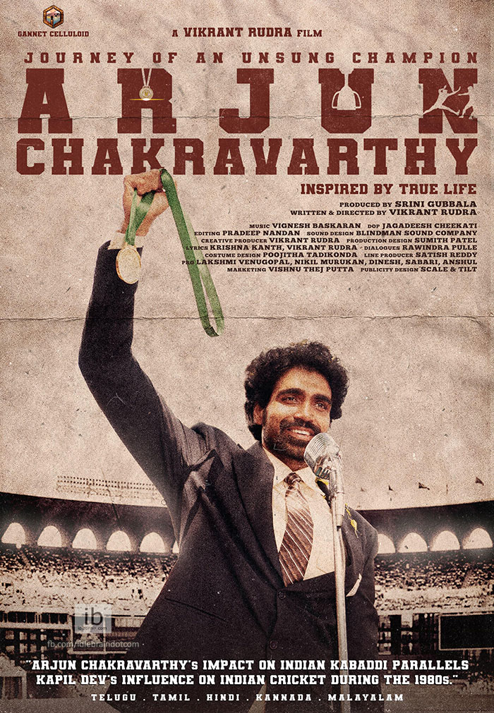 ఫస్ట్ లుక్లో అర్జున్ చక్రవర్తి స్టేడియం మధ్యలో చేతిలో పతకంతో, ముఖంలో అనుకున్నది సాధించానన్న గర్వంతో కనిపించడం చూడవచ్చు. "భారత కబడ్డీపై అర్జున్ చక్రవర్తి ప్రభావం, 1980లలో భారత క్రికెట్పై కపిల్ దేవ్ ప్రభావం స్థాయిలో ఉంటుంది" అంటూ రాసిన అక్షరాలు సినిమాపై అంచనాలను మరోస్థాయికి తీసుకెళ్ళాయి. అలాగే అర్జున్ యొక్క స్ఫూర్తిదాయకమైన కథ గురించి తెలుసుకోవాలనే ఆసక్తిని రేకెత్తిస్తుంది. త్వరలోనే వెండితెరపై ఈ అద్భుతమైన కథను చూడబోతున్నాం. క్రీడాకారుడి పాత్ర కావడంతో భారీ కసరత్తులు చేసి విజయ రామరాజు తన దేహాన్ని ఎంతో దృఢంగా మలిచారు.
