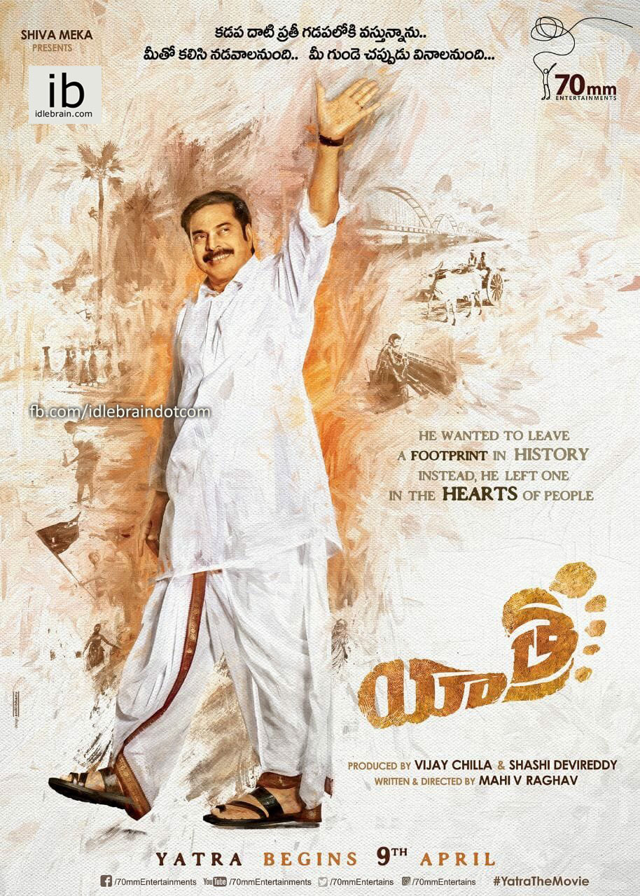 ఉమ్మడి ఆంధ్రప్రదేశ్ రాష్ట్ర మాజి ముఖ్యమంత్రి దివంగత నేత డాక్టర్. వైయస్ రాజశేఖర్ రెడ్డి గారి బయోపిక్ ని వరుసగా భలేమంచి రోజు, ఆనందో బ్రహ్మ లాంటి విజయాలు సాధిస్తున్న నిర్మాతలు విజయ్ చిల్లా, శశిదేవి రెడ్డి లు సంయుక్తంగా ఆనందో బ్రహ్మ లాంటి బ్లాక్బస్టర్ హిట్ చిత్రానికి దర్శకత్వం వహించిన మహి.వి.రాఘవ్ దర్శకత్వం వహిస్తున్నారు. ఈ చిత్రంలో డా..వైఎస్ రాజశేఖర్ రెడ్డి గారి పాత్రలో మళయాల సూపర్స్టార్ మమ్మూట్టి నటిస్తున్నారు. మమ్మూట్టి తెలుగు లో చాలా కాలం తరువాత నటించడం విశేషం. ఈ చిత్రాన్ని ఏప్రిల్ 9 నుండి ప్రారంభించనున్నారు. ఈ సంధర్బంగా వైఎస్ ఆర్ గెటప్ లో వున్న మమ్మూట్టి మెదటి లుక్ ని విడుదల చేశారు. ఈ బయోపిక్ కి యాత్ర అనే పెర్ఫెక్ట్ టైటిల్ పెట్టారు.