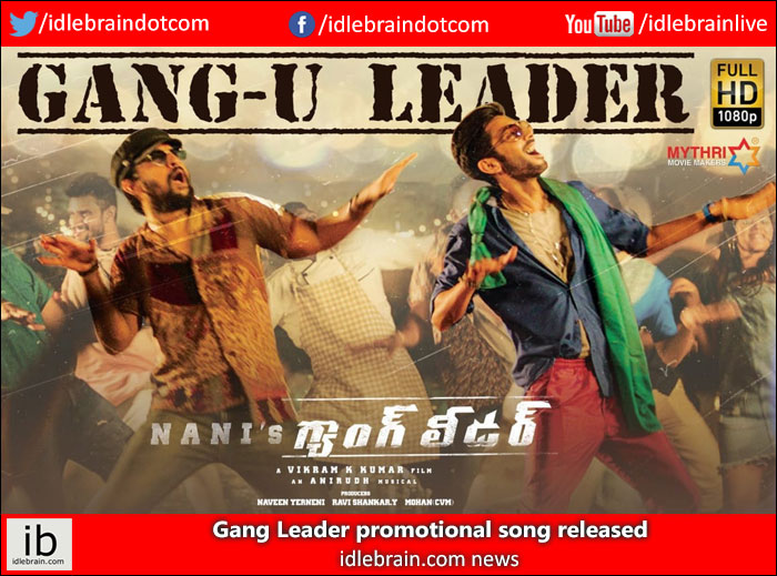 నేచురల్ స్టార్ నాని, వెర్సటైల్ డైరెక్టర్ విక్రమ్ కె.కుమార్ కాంబినేషన్లో మైత్రి మూవీ మేకర్స్ పతాకంపై నవీన్ ఎర్నేని, వై.రవిశంకర్, మోహన్(సివిఎం) నిర్మిస్తున్న విభిన్న చిత్రం 'నాని'స్ గ్యాంగ్ లీడర్'. ఈ చిత్రాన్ని సెప్టెంబర్ 13న ప్రపంచవ్యాప్తంగా విడుదల చేస్తున్నారు. ఇటీవల ఈ సినిమాకి సంబంధించి విడుదలైన ప్రీ లుక్కి, ఫస్ట్లుక్కి, ఫస్ట్ సాంగ్కి, టీజర్కి అద్భుతమైన స్పందన వచ్చింది. ఒక ఇంట్రెస్టింగ్ పాయింట్తో తెరకెక్కుతున్న ఈ సినిమాపై ప్రేక్షకుల్లో మంచి అంచనాలు ఉన్నాయి. ఈ చిత్రానికి అనిరుధ్ రవిచందర్ సంగీతాన్ని అందిస్తున్నారు. `సీను సిరిగి..సీటులిరిగి..సీటీ కొట్టాలోయి..` అంటూ సాగే సినిమా ప్రమోషనల్ సాంగ్ను గురువారం చిత్ర యూనిట్ విడుదల చేసింది. ఈ సాంగ్లో నేచురల్ స్టార్ నాని, మ్యూజిక్ డైరెక్టర్ అనిరుధ్ సందడి చేశారు. సినిమాలో లక్ష్మి, శరణ్య, హీరోయిన్ ప్రియాంకతో పాటు సినిమాలో నటించిన చిన్న పాప క్యారెక్టర్స్ గురించి నాని ఎక్స్ప్లెయిన్ చేసేలా ఈ ప్రమోషనల్ సాంగ్ను అనిరుధ్ డిజైన్ చేశారు.