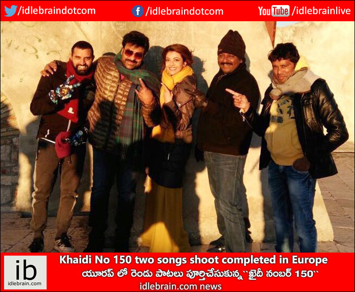 మెగాస్టార్ చిరంజీవి, కాజల్ నాయకానాయికలుగా వి.వి.వినాయక్ దర్శకత్వంలో `ఖైదీ నంబర్ 150` వ సినిమా ప్రతిష్టాత్మకంగా తెరకెక్కుతున్న సంగతి తెలిసిందే. హైదరాబాద్ లో పలు కీలక సన్నివేశాలను తెరకెక్కించిన టీమ్ ఇటీవలే పాటల చిత్రణకు యూరప్ వెళ్లింది. అక్కడ క్రొయేషియా, స్లోవేనియా వంటి ఎగ్జాటిక్ లొకేషన్లలో చిత్రీకరణ చేశారు. తాజాగా టీమ్ ఆ పనులను కూడా పూర్తి చేసుకుని హైదరాబాద్ తిరిగి వచ్చేసింది.