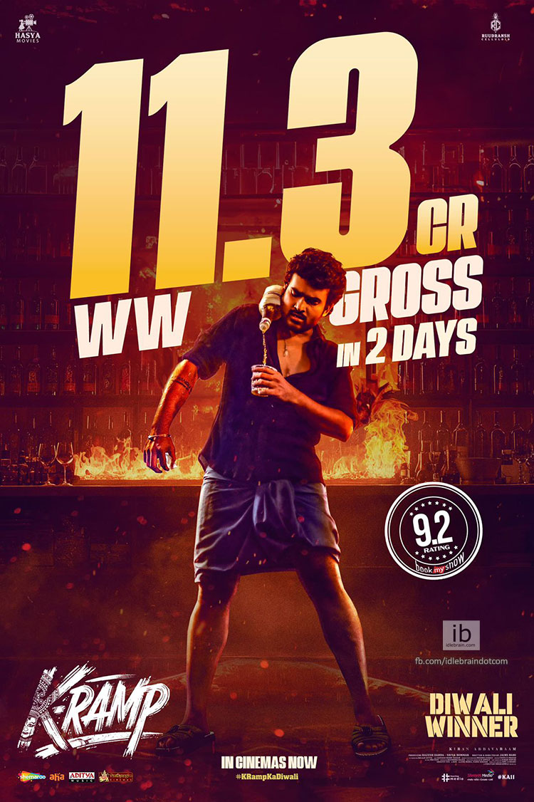 The successful hero Kiran Abbavaram’s latest film “K-Ramp” continues its blockbuster journey. Emerging as the Diwali champion among all new releases, the film is seeing its collections rise with each passing show. Remarkably, the Day 2 numbers surpassed Day 1, with K-Ramp grossing an impressive ₹11.3 crore in just two days. Kiran Abbavaram’s energetic promotions and strong connection with audiences have clearly paid off, as the film gains massive popularity across youth, mass, and family audiences alike.