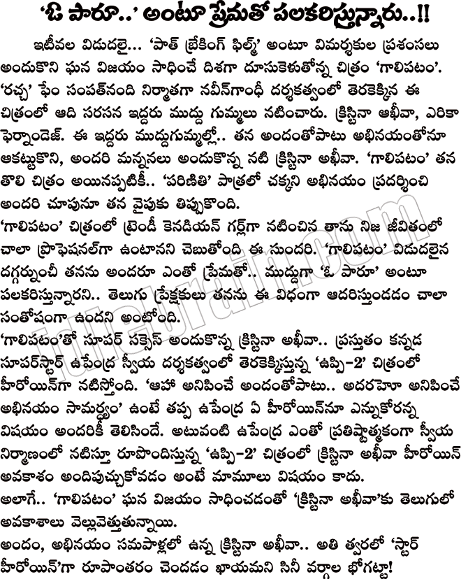 Gaalipatam Fame kristina akheeva with upendra