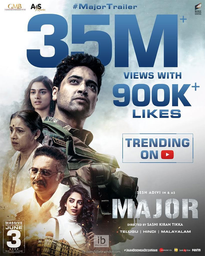 As of now, Major trailer received 35 million views and it has been trending on YouTube from the day it was released. What’s more, the trailer got 900K likes which is another great attainment.