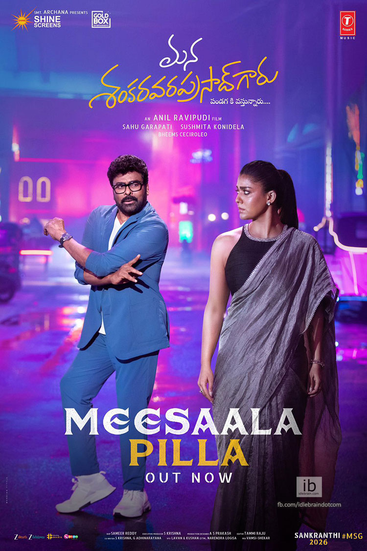 అనిల్ రావిపూడి దర్శకత్వంలో చిరంజీవి మరియు నయనతార హీరోహీరోయిన్లుగా నటిస్తున్న 'మన శంకరవరప్రసాద్ గారు' నుండి దసరా నాడు విడుదలైన 'మీసాల పిల్లా' సాంగ్ ప్రోమో ఎంతో అలరించిన సంగతి తెలిసిందే. చాలాకాలం తరువాత చిరంజీవి & ఉదిత్ నారాయణ్ కాంబో నుండి వచ్చిన సాంగ్ అవ్వడంతో ఈ పాటపై విపరీతమైన క్రేజ్ ఏర్పడింది. దానికి తగ్గట్టే ప్రోమోలో చిరంజీవి స్టైలిష్ లుక్, వన్నె తగ్గని అతని స్టెప్స్, ఉదిత్ నారాయణ్ వాయిస్ ఎంతో అలరించాయి కూడా. దాంతో ఈ సాంగ్ ఫుల్ లిరికల్ వీడియో ఎప్పుడొస్తుందా అని ప్రేక్షకులు ఆసక్తిగా ఎదురుచూశారు. తాజాగా 'మన శంకరవరప్రసాద్ గారు' చిత్ర యూనిట్ 'మీసాల పిల్లా' ఫుల్ లిరికల్ సాంగ్ ను విడుదల చేసింది.
