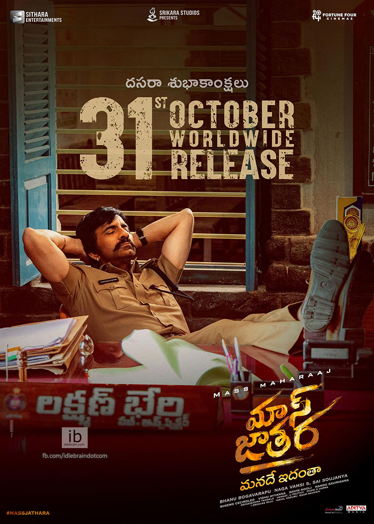 మాస్ మహారాజా రవితేజ అభిమానులతో పాటు, తెలుగు సినీ ప్రియులంతా ఎంతో ఆసక్తిగా ఎదురుచూస్తున్న 'మాస్ జతర' చిత్రం అక్టోబర్ 31, 2025న విడుదల కానుంది. ఈ మేరకు నిర్మాతలు అధికారికంగా ప్రకటించారు. వింటేజ్ వైబ్స్, పక్కా కమర్షియల్ అంశాలతో ఈ చిత్రం థియేటర్లలో అసలుసిసలైన మాస్ పండుగను తీసుకురాబోతుంది. ఇప్పటివరకు ఈ సినిమా నుండి విడుదలైన ప్రతి కంటెంట్ ప్రేక్షకులను విశేషంగా ఆకట్టుకొని, వినోదాల విందుకి హామీ ఇచ్చింది.