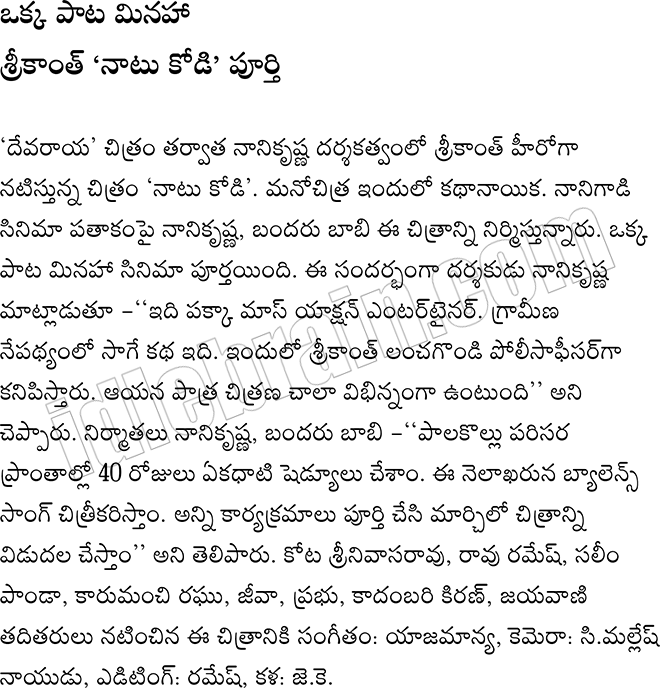 Natu kodi film Shooting Completed except one song