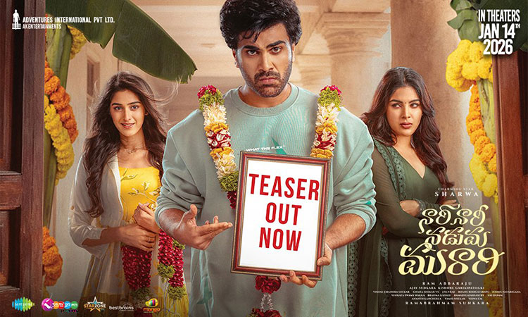 Charming Star Sharwa’s upcoming wholesome family entertainer Nari Nari Naduma Murari, directed by Ram Abbaraju, promises a colorful blend of laughter, emotions, and engaging family drama, making it a perfect festive watch. Produced by Ramabrahmam Sunkara under the AK Entertainments banner in association with Adventures International Pvt. Ltd., the film stars Samyuktha and Sakshi Vaidya as the female leads. The makers have now unveiled the film’s teaser, and it delivers exactly what it promises—pure entertainment.