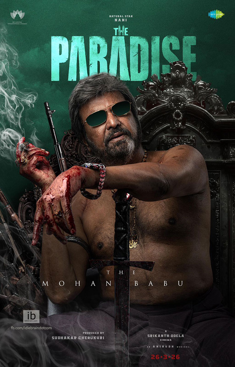 Director Srikanth Odela brings the legendary Mohan Babu back to the screen after a long time, casting him as a formidable antagonist. Designed to revive the vintage Mohan Babu aura, the character instantly impressed the veteran star, who embraced the role with enthusiasm. The legendary actor turned into a fan of director Srikanth after listening to the role written for him. His striking look in The Paradise perfectly complements his larger-than-life presence while staying true to his iconic charisma.