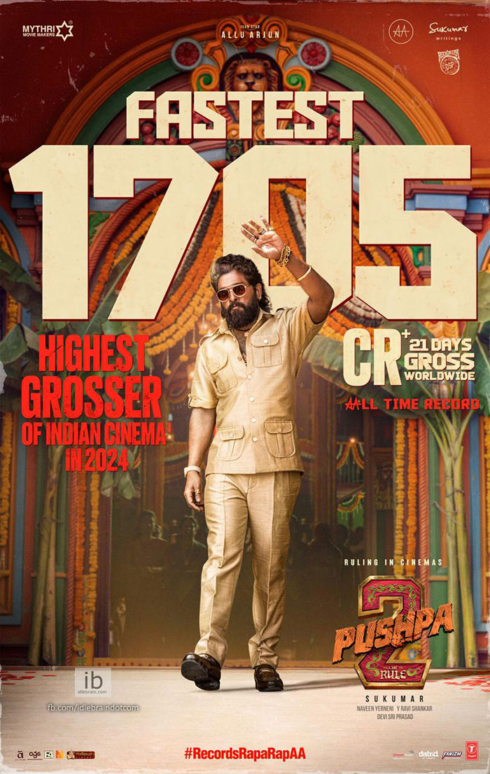 21 రోజుల్లో రూ.1705 కోట్లు కలెక్ట్ చేసిన తొలి భారతీయ చిత్రం ఇండియన్ బ్లాక్బస్టర్ 'పుష్ప-2'