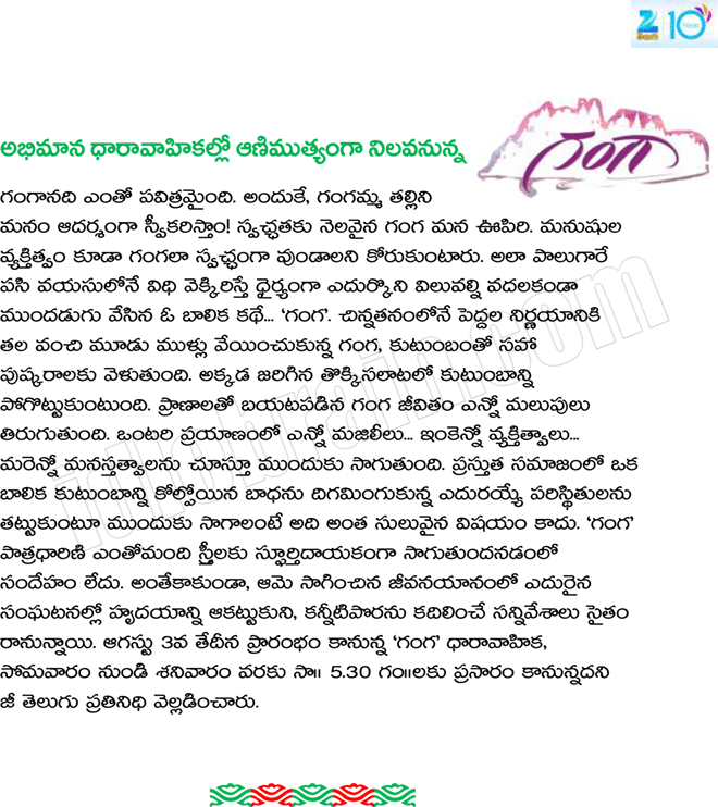 Watch Gangaa on Zee Telugu starting 3rd Aug 2015, Monday - Saturday at 5:30 PM.