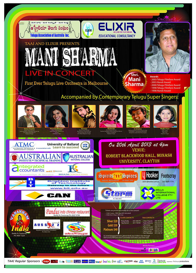 Mani Sharma's Live In concert in Australia - Melbourne on 20 April